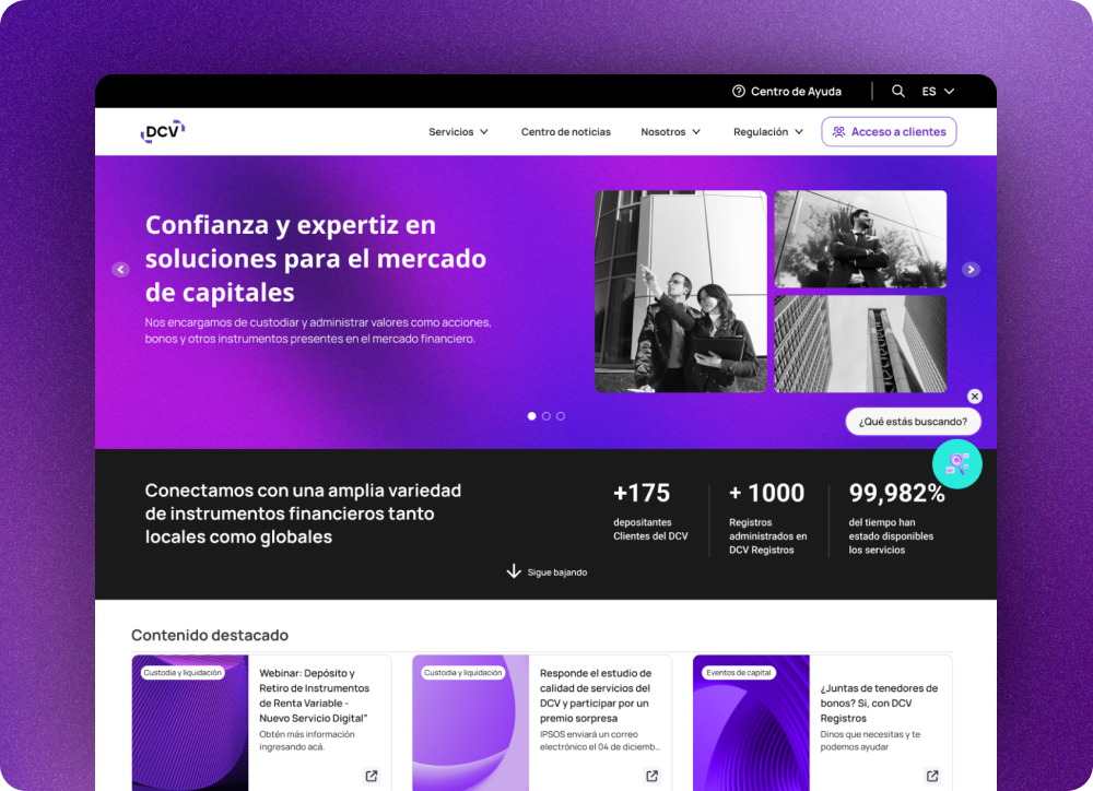Página web de gran escala para el mercado de capitales, con arquitectura compleja y experiencia de usuario optimizada.