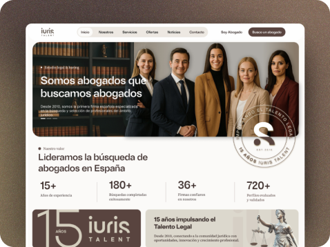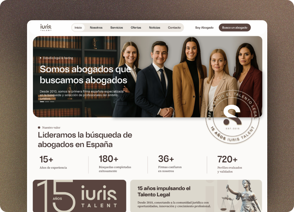 Página web para un estudio de abogados en España, diseñada para transmitir confianza y facilitar la búsqueda de talento jurídico.