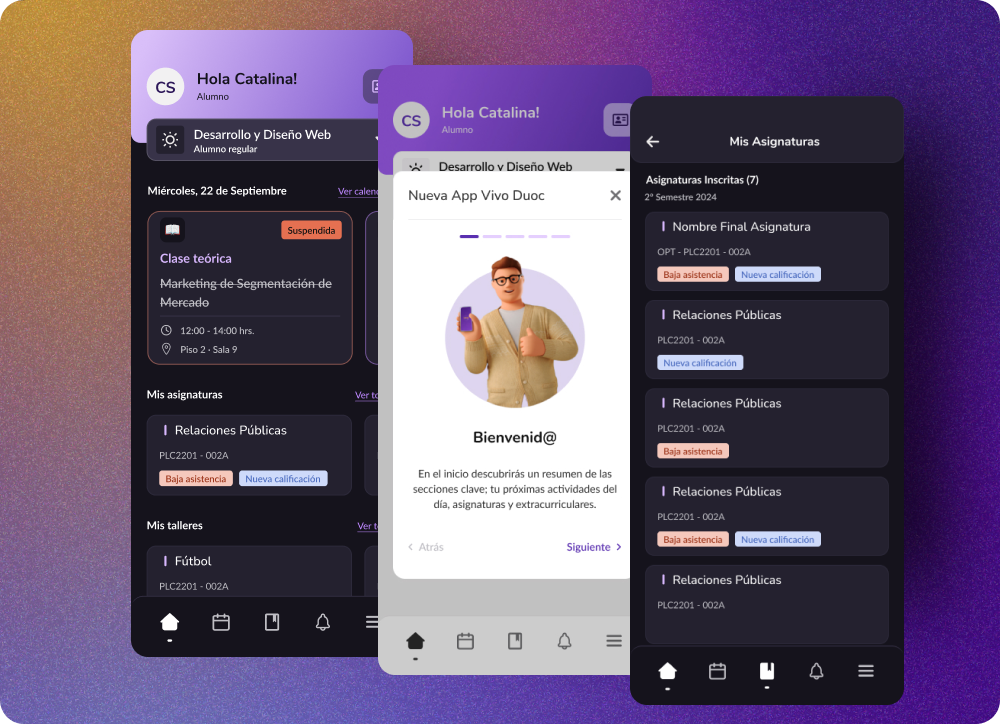 App estudiantil con Design System, que centraliza recursos académicos y comunicación en un entorno intuitivo.